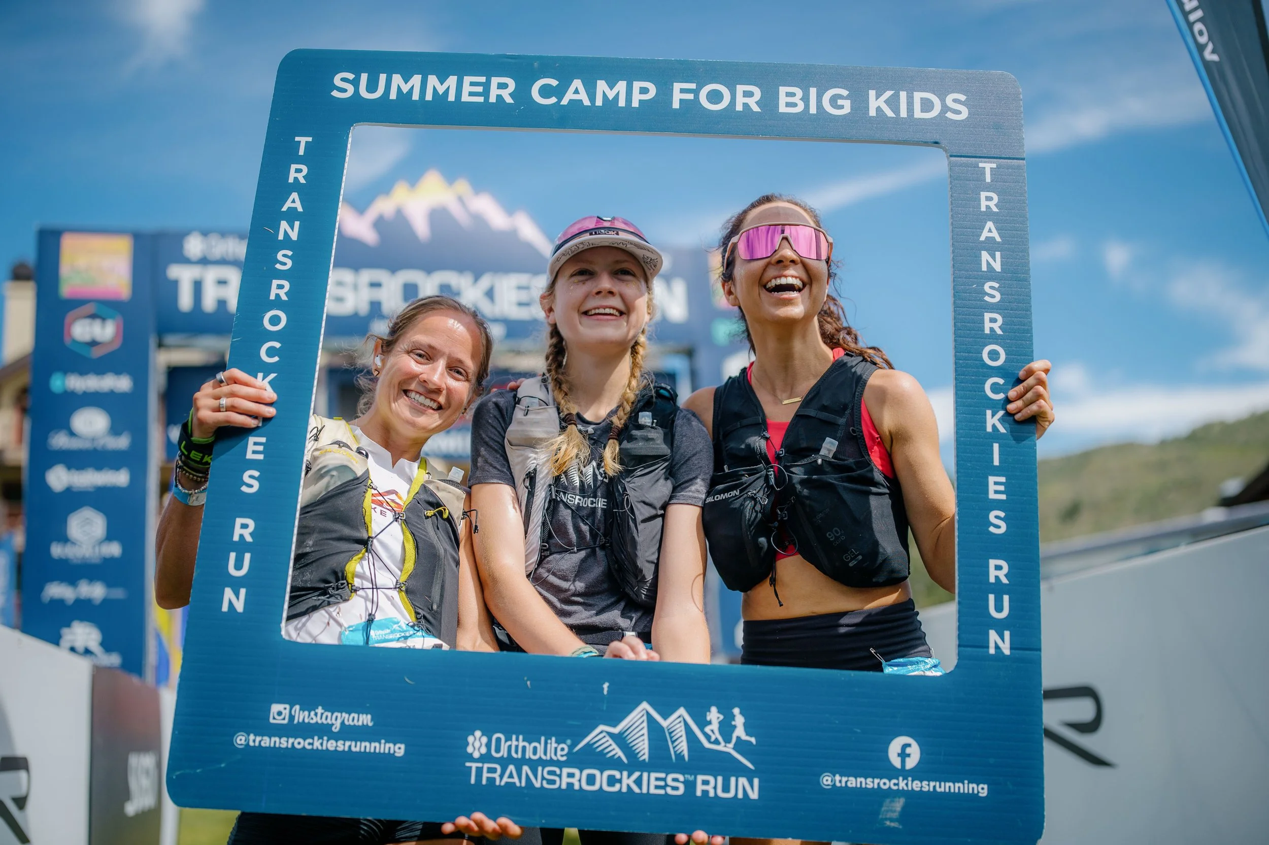 Coach Brittany Peterson (left) celebrating a 3rd overall in the women’s division at the 2024 TransRockies Run 6-Day Stage Race - Photo: Alex Zauner