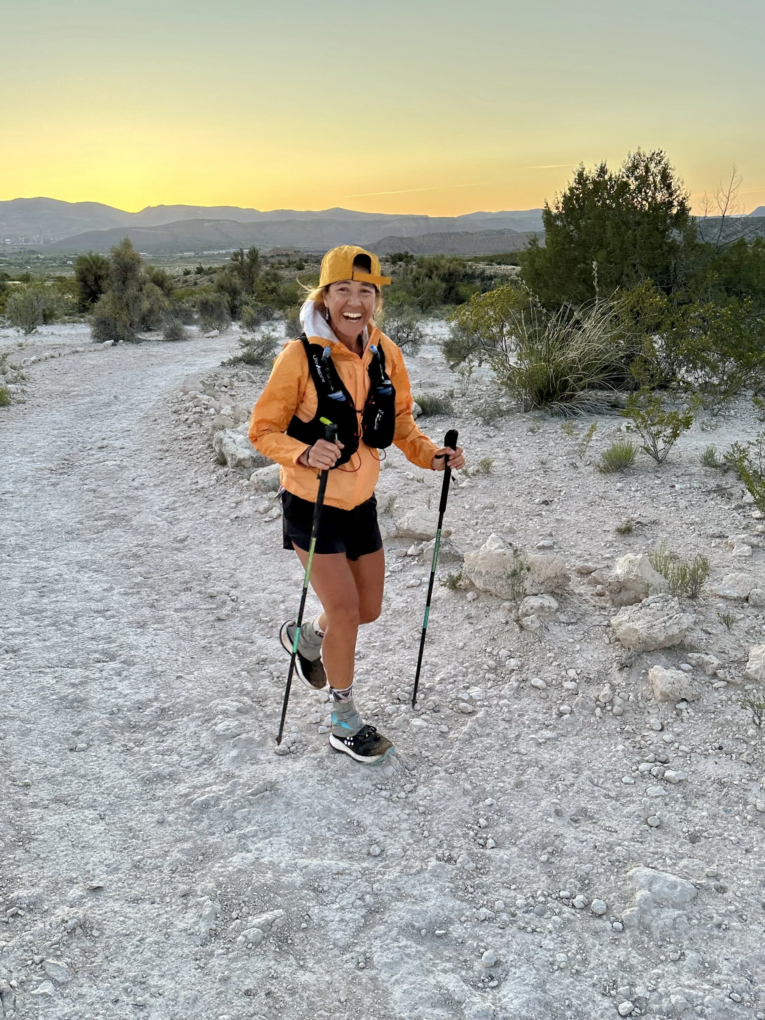 Coach Manu Vilaseca running her way to a 2nd place finish at the Cocodona 250 in 2024.